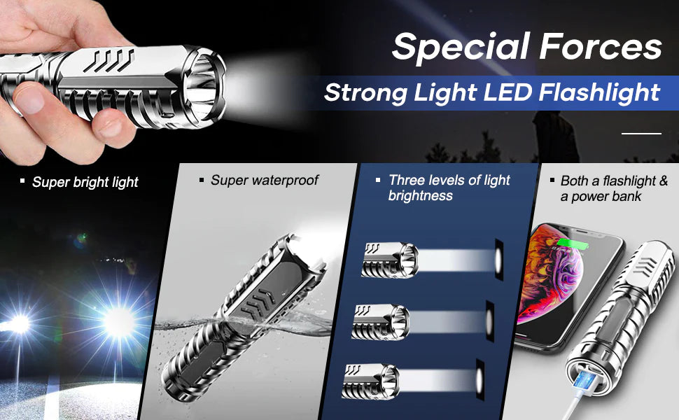 • Super Bright Flashlight - The Super Bright Flashlight projects a wide beam of light that easily illuminates an entire room or your garden, illuminating things up to 4999 feet away with great clarity. This flashlight has a top notch lifespan.